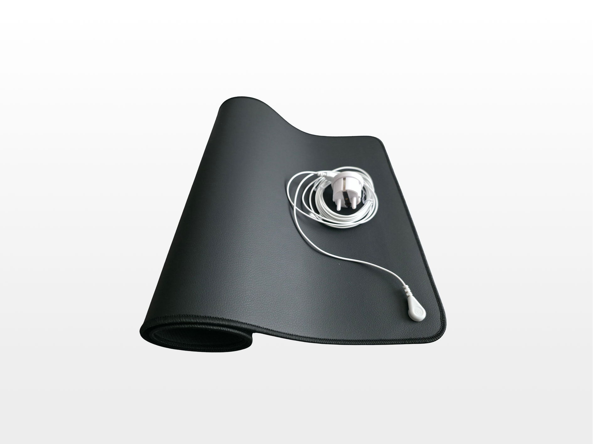 Die Erdungs-Matte ist ideal geeignet als Schreibtischauflage zum Erden. Wir stellen die Computertastatur so auf die Erdungsmatte, dass die Unterarme Hautkontakt haben und auf der Seite die Computermaus liegt. Dadurch wird die Aufladung mit Elektrosmog während der PC Arbeit reduziert. Auch als Fußmatte zu verwenden. Nicht als Bettauflage geeignet!